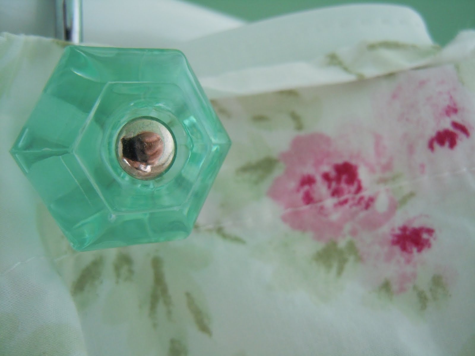 This is one room where I let my Shabby Chic inklings take control. John is a sweet and highly tolerant hubby, but too much froo-froo and he puts his foot down. Thus, I have kept the main floor bolder color schemes. However... the upstairs is pretty much my own domain. The Rachel Ashwell shower curtain from Target really set the whole tone for the room. Then,the accessories just fell happily into place from there. The second best thing I did for this space was hang a white lace panel in place of the old, heavy brown one. Instant light cascaded into the room. Privacy isn't an issue since there was all ready mottled glass in place for the second story room. Hope you enjoyed a glimpse into my home. As the nesting process continues, I hope to share more rooms in future.